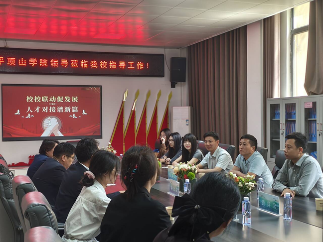 紧接着,周口新星学校校长王松林详细介绍了学校的师资队伍建设、发展规划、人才需求等内容,并表示学校一直重视教师队伍的建设,希望能够与太阳集团网址8722建立长期稳定的合作关系,吸引更多优秀的高校毕业生加入到教育事业中来。此外,双方就师范生实习实训、教育教学研究、就业岗位拓展等内容进行了深入探讨。