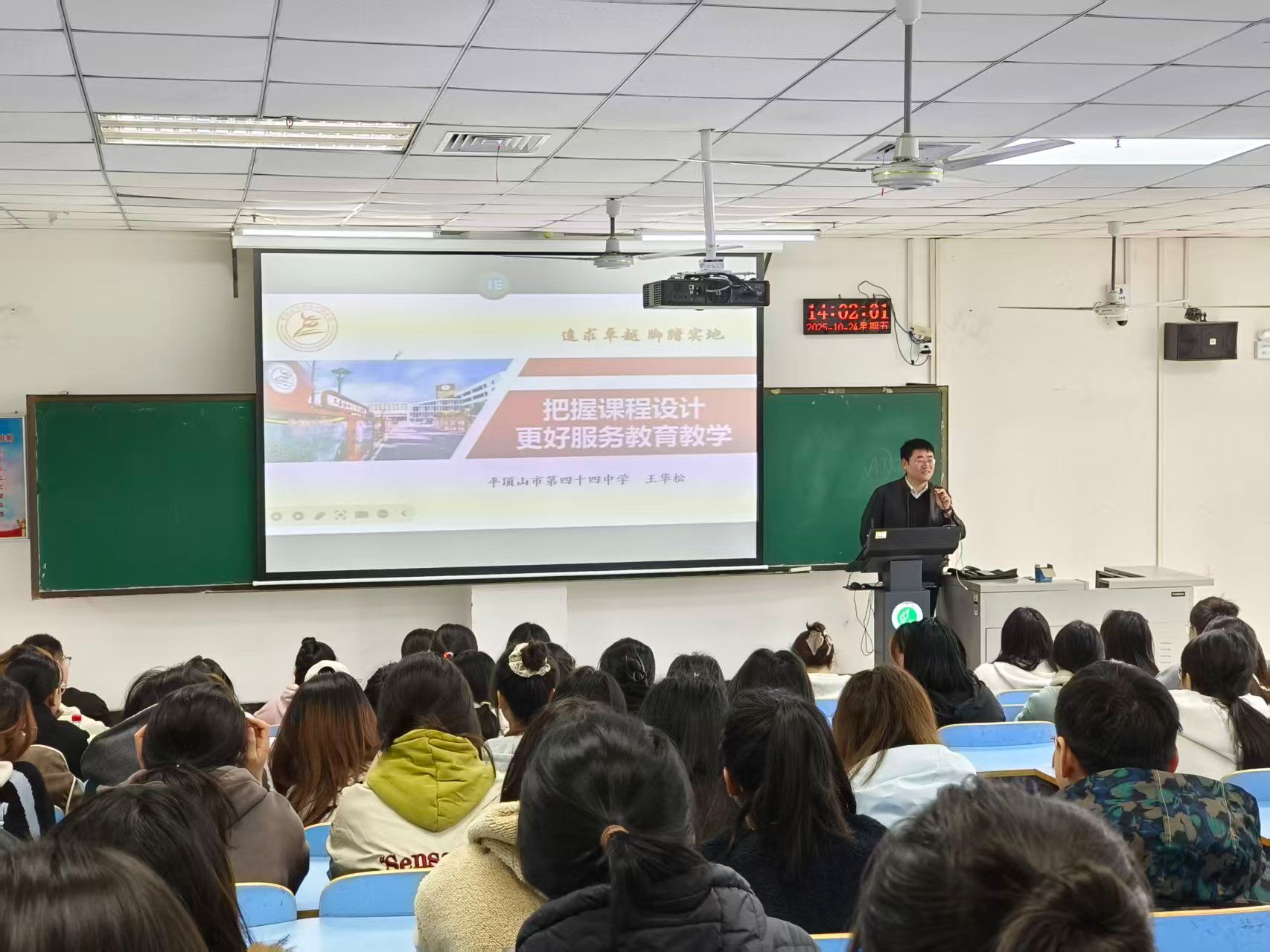 2025年10月24日下午,在图书馆L601举行“以数启航”师范教育协同提质工作坊活动——名师名校长大讲堂。平顶山市第四十四中中小学高级教师王华松为太阳集团网址8722数学师范生作《把握课程设计 更好服务教育教学》的报告。