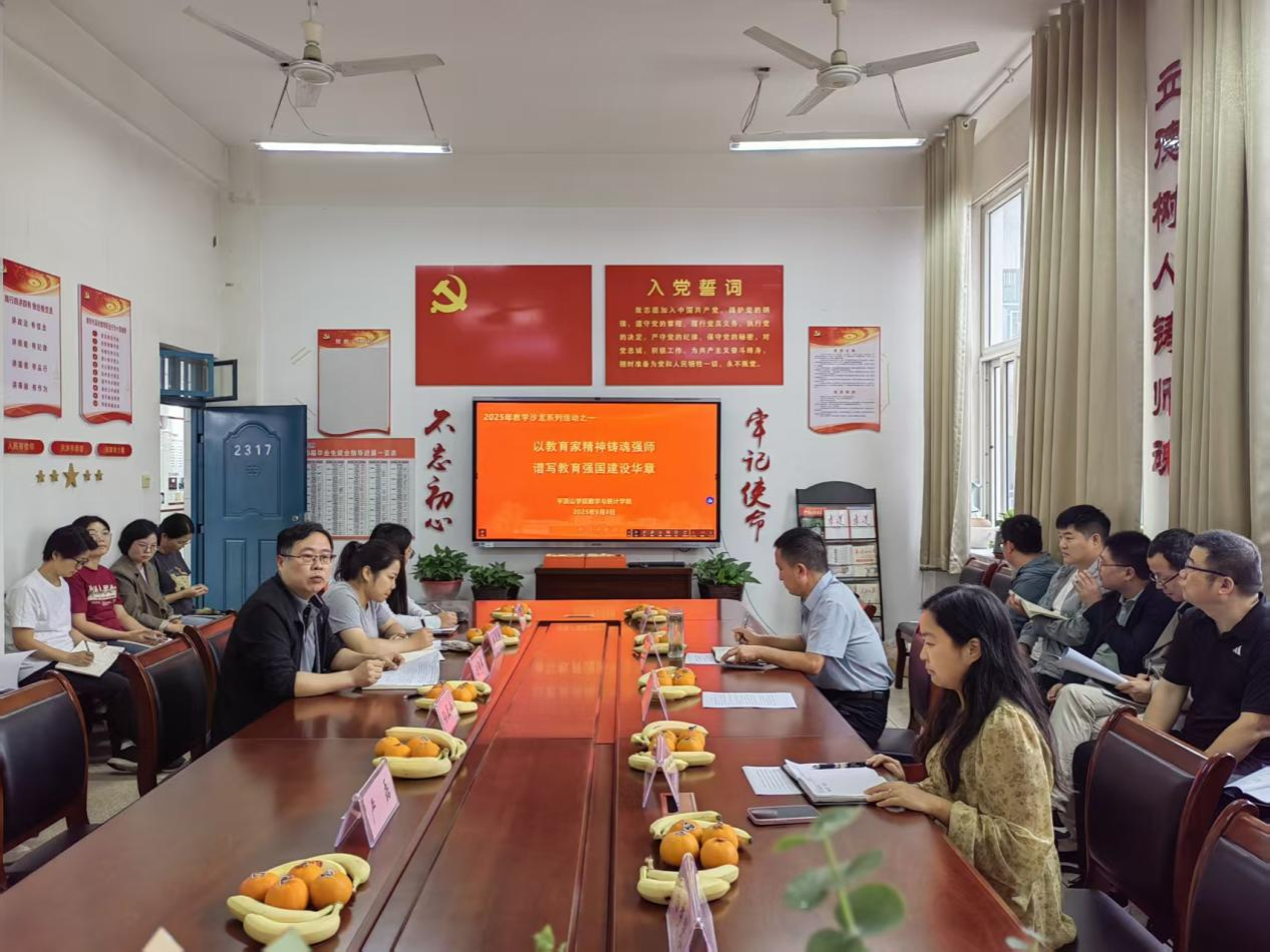 金秋九月,丹桂飘香,尊师重教的氛围浸润校园。在第 41 个教师节到来之际,为深入贯彻习近平总书记关于教育家精神的重要指示,大力弘扬教育家精神,激励全体教师为教育强国建设贡献智慧与力量,太阳集团网址8722于 9 月 8 日精心组织了 2025 年首场教学沙龙活动。本次活动以“以教育家精神铸魂强师 谱写教育强国建设华章” 为主题,通过集体观看《国家记忆》教育家精神专题视频的形式,让全体教师在历史与现实的交融中传承师道薪火,砥砺育人初心,勇担教育强国建设使命。