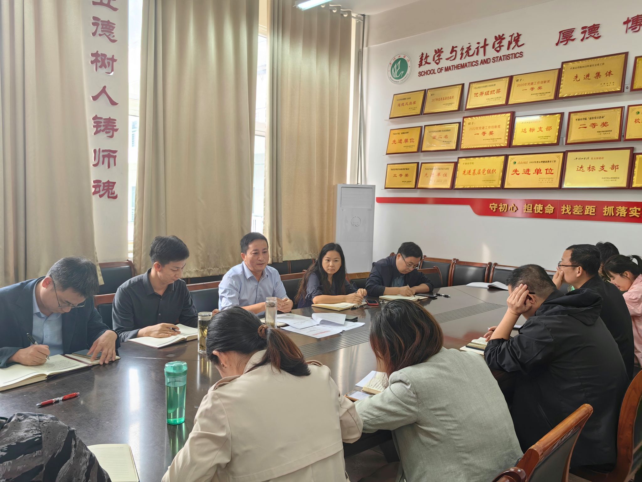 张建林首先带领学习习近平总书记关于落实中央八项规定精神的重要指示精神,传达了学校党委关于巩固拓展深入贯彻中央八项规定精神学习教育成果推进作风建设常态化、长效化的通知精神以及校党委扩大会议暨党的建设工作领导小组会议精神。接着张建林从学习教育的主要做法、取得的成效以及存在的问题三个方面对我院党委深入贯彻中央八项规定精神学习教育进行工作总结。他提出学院将深入推进中央八项规定精神学习教育,持之以恒抓好作风建设,将学习教育成果转化为推动事业高质量发展的强大动力,以更加优良的作风、更加饱满的热情、更加扎实的工作,为学校顺利实现“大三步走”和“小三步走”战略贡献数统院的智慧和力量。